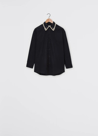 This new shirt stems from LEMAIRE’s collaboration with artistic duo FreelingWaters. The Shirt With Embroidered Collar is crafted in crepe cotton that has been yarn-dyed for a washed effect and a fluid texture. This relaxed-fit style boasts a colorful mix of print and rounded bead embroidery on the collar, evoking shards and brushstrokes all around the neckline. This style features Mother-of-pearl and metal buttons at the front and the cuffs. DETAILS - Relaxed fit - Metalic embroideries - Pearl embroideries - Mother-of-pearl buttons Made in Tunisia Style: SH1110 LF1067 FABRICS & CARE Main Fabric: 100% Cotton Second Fabric: 100%Cotton Hand wash Do not bleach Do not tumble dry Cool ironing Soft dry clean