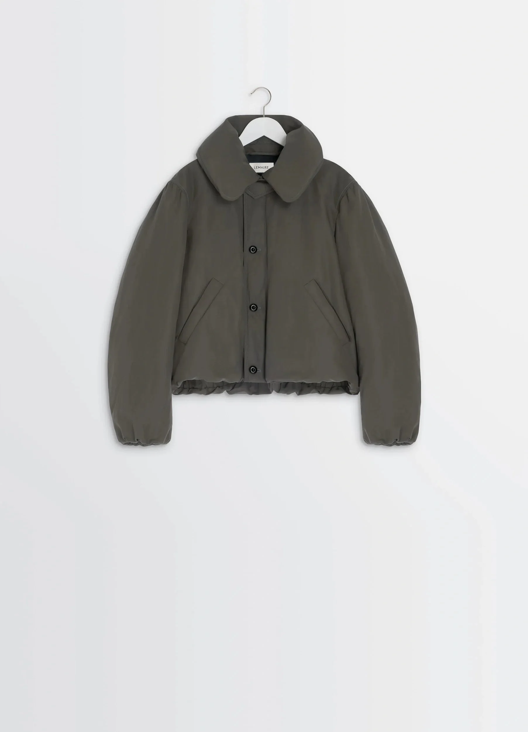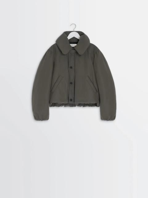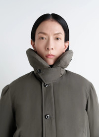 This short puffer jacket is feather-filled to ensure a light, warm feel. Made from a blend of linen and cotton with a water-repellent treatment, this fabric provides technical protection against the elements. DETAILS Short puffer blouson in water-repellent linen and cotton blend Straight cut, cinched at the waist .Fully lined and quilted model Bubble collar with chin strap Zipper and button closure Long sleeves Elasticated cuffs Side pockets with snaps Interior drawstring channel with drawcord and stoppers Snapped inside pocket Made in Tunisia Style : OW1151 LF1019 Le mannequin mesure 177 cm porte une taille 36 (S). FABRICS & CARE Main Material: 44% Polyamide 32% Linen 24% Cotton Main Lining: 100% Cotton Second Lining: 100% Cotton Third Lining: 100% Polyamide Trim 2: 100% Polyester Trim: 90% White duck down 10% White duck feathers