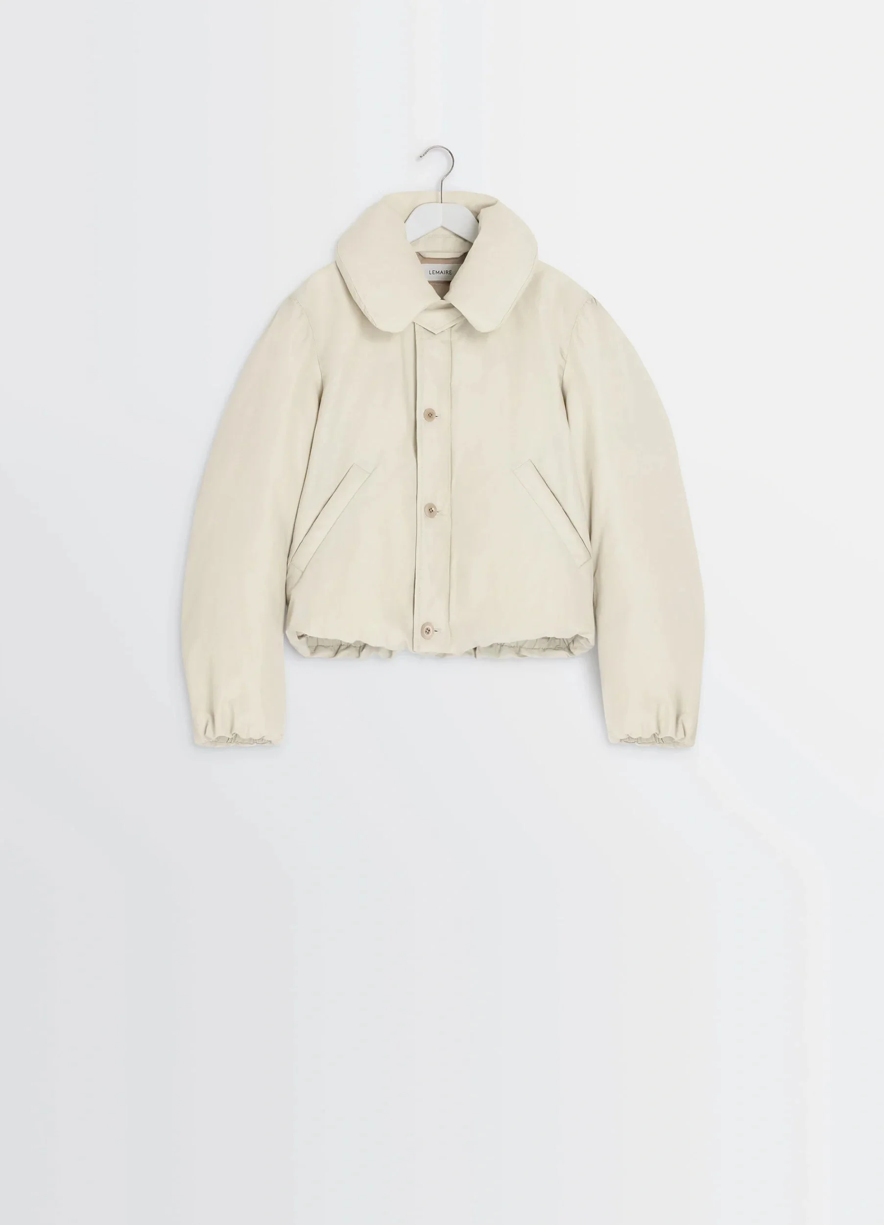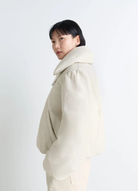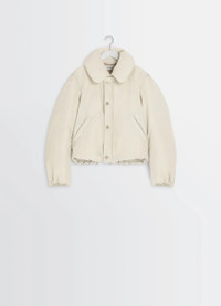 This short puffer jacket is feather-filled to ensure a light, warm feel. Made from a blend of linen and cotton with a water-repellent treatment, this fabric provides technical protection against the elements. DETAILS Short puffer blouson in water-repellent linen and cotton blend Straight cut, cinched at the waist .Fully lined and quilted model Bubble collar with chin strap Zipper and button closure Long sleeves Elasticated cuffs Side pockets with snaps Interior drawstring channel with drawcord and stoppers Snapped inside pocket Made in Tunisia Style : OW1151 LF1019 Le mannequin mesure 177 cm porte une taille 36 (S). FABRICS & CARE Main Material: 44% Polyamide 32% Linen 24% Cotton Main Lining: 100% Cotton Second Lining: 100% Cotton Third Lining: 100% Polyamide Trim 2: 100% Polyester Trim: 90% White duck down 10% White duck feathers