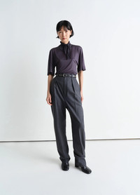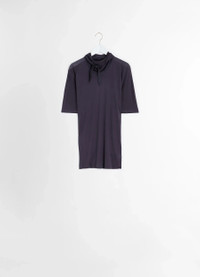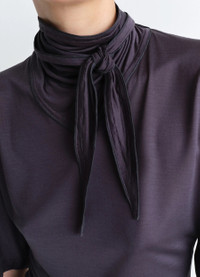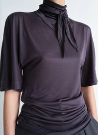 This Short Sleeve Foulard Top is crafted from silk jersey, a fluid and lightweight fabric with an incredibly soft feel. The silhouette is gently fitted, with a relaxed short sleeve and subtle shaping at the waist. A pointed foulard in the same fabric is attached to the V-shape stand collar at the front, allowing you to tie or untie it for versatile styling. Topstitching details accent the sleeves, the shoulders, the neckline and the integrated scarf. DETAILS Straight fit High neck with integrated scarf Topstitching details Made in Portugal Style: TO1337 LJ1011 The Model is 176cm / 5' 9½'' ft and is wearing a size 36 (S). FABRICS & CARE Main Fabric: 100% Silk Hand wash Do not bleach Do not tumble dry Cool ironing Soft dry clean Dry flat Discover the traceability
