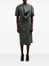 short-sleeve wrap dress Highlights - Grey - Silk blend - Wrap design - Round neck - Front button fastening - Belted waist - Short sleeves - Mid-length Imported Composition Silk 76%, Polyamide 24% Washing instructions Read Manufacturer Guidelines