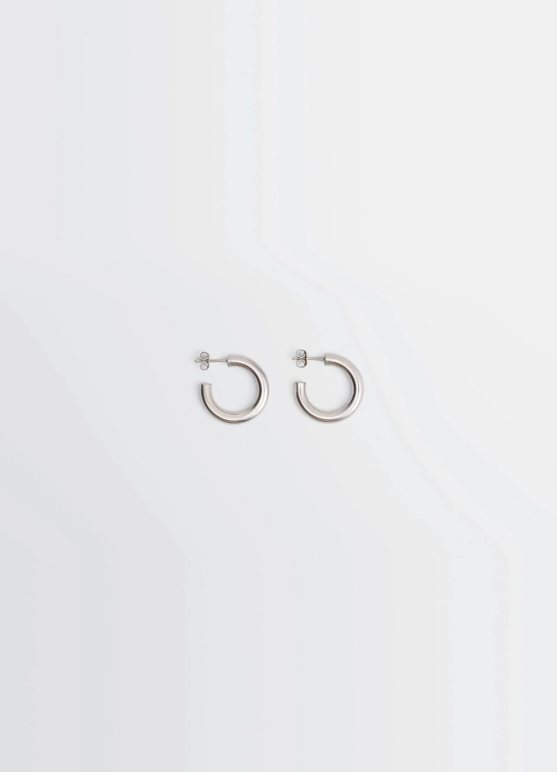 The unisex Classic line is a Lemaire wardrobe essential with a minimalist aesthetic, equally suited to everyday wear or an elegant evening alternative. This pair of small hoop earrings is crafted in recycled rhodium-plated silver. DETAILS Classic S hoop earrings in rhodium-plated silver Semi-open design Butterfly clasp and stem Height: 1 cm Made in Spain Style: JW0088 LO0042 FABRICS & CARE Main material: 100% rhodium silver