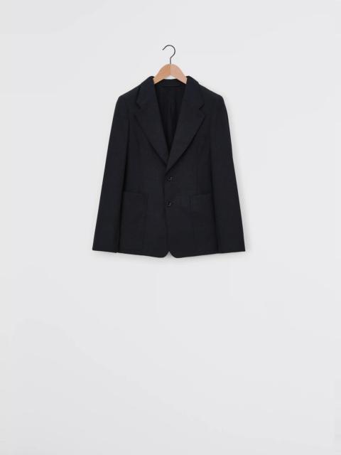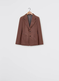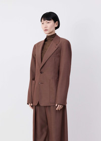 This jacket exemplifies the more structured side of LEMAIRE’s tailoring know-how. It is crafted in our signature tropical poly-wool, woven into a melange twill, with a dense yet supple texture. Among classic tailoring details are a generously structured shoulder, a wide notched collar, a lapel buttonhole, and single-breasted corozo buttoning. Two patch pockets sit at the hip, accentuating the feminine hourglass silhouette. A welt pocket adorns the upper front, with two more hidden inside the fully lined jacket. A classic back slit adds extra comfort. DETAILS - Classic fit - Padded shoulders - Notched collar - Single breasted - Patch pockets - Welt pocket - Inside welt pockets - Fully lined Made in Slovakia Style: JA1048 LF414 FABRICS & CARE Main Fabric: 55% Polyester / 45% Wool Main Lining: 51% Cotton / 49% Viscose Second Lining: 100% Cotton Third Lining: 100% Cotton Do not wash Do not bleach Do not tumble dry Cool ironing Soft dry clean