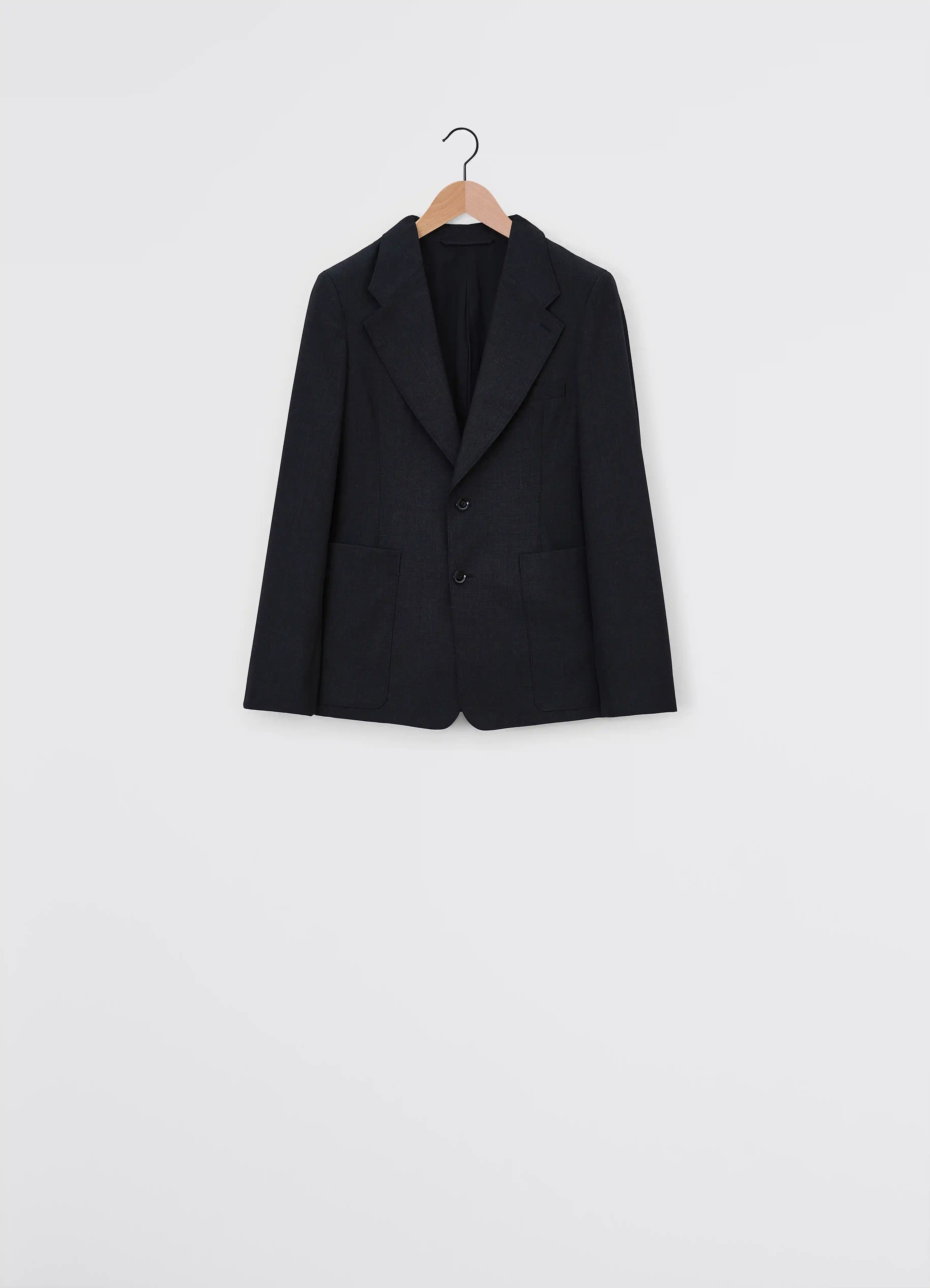 This jacket exemplifies the more structured side of LEMAIRE’s tailoring know-how. It is crafted in our signature tropical poly-wool, woven into a melange twill, with a dense yet supple texture. Among classic tailoring details are a generously structured shoulder, a wide notched collar, a lapel buttonhole, and single-breasted corozo buttoning. Two patch pockets sit at the hip, accentuating the feminine hourglass silhouette. A welt pocket adorns the upper front, with two more hidden inside the fully lined jacket. A classic back slit adds extra comfort. DETAILS - Classic fit - Padded shoulders - Notched collar - Single breasted - Patch pockets - Welt pocket - Inside welt pockets - Fully lined Made in Slovakia Style: JA1048 LF414 FABRICS & CARE Main Fabric: 55% Polyester / 45% Wool Main Lining: 51% Cotton / 49% Viscose Second Lining: 100% Cotton Third Lining: 100% Cotton Do not wash Do not bleach Do not tumble dry Cool ironing Soft dry clean