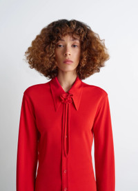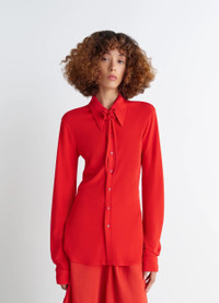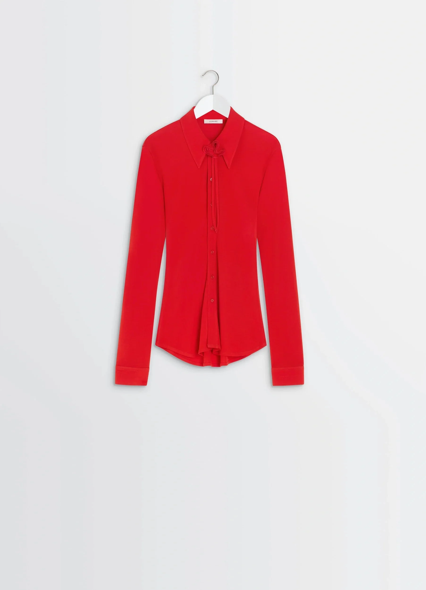 Inspired by Lemaire's taste for the link between comfort and elegance, this slim-fitting shirt in viscose crepe jersey features a matching removable cord and flower, completing the house's feminine wardrobe. The model is 177 cm tall and is wearing a size 36 (S). Inspired by Lemaire's taste for the link between comfort and elegance, this slim-fitting shirt in viscose crepe jersey features a matching removable cord and flower, completing the house's feminine wardrobe. The model is 177 cm tall and is wearing a size 36 (S). DETAILS Flowing viscose crepe jersey shirt Fitted cut Shirt collar Matching removable cord and flowers Front button closure Long sleeves Straight buttoned cuffs Lacquered buttons Made in Portugal Style : SH1196 LJ1040 Flowing viscose crepe jersey shirt Fitted cut Shirt collar Matching removable cord and flowers Front button closure Long sleeves Straight buttoned cuffs Lacquered buttons Made in Portugal Style : SH1196 LJ1040 CARE Main Material: 100% Viscose Do not wash Do not bleach Do not tumble dry Cool ironing Soft dry clean Dry flat Main Material: 100% Viscose Do not wash Do not bleach Do not tumble dry Cool ironing Soft dry clean Dry flat
