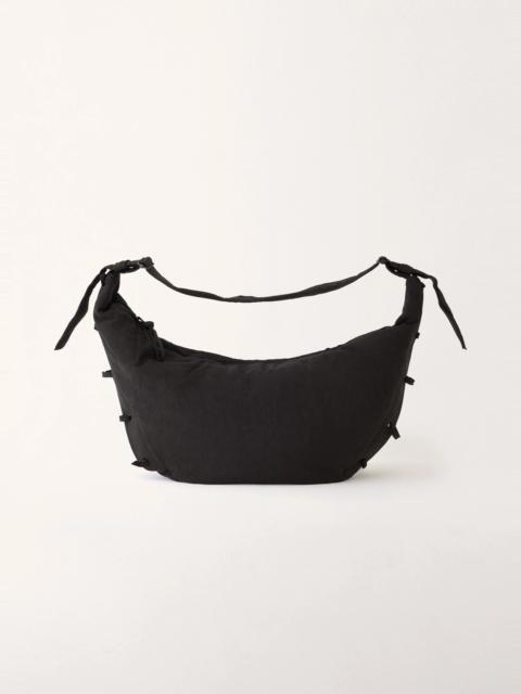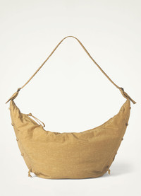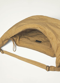This unisex bag is made of wadded nylon with a matte surface and a sturdy structure that holds its shape over time. Its large shape is inspired by LEMAIRE’s classic Croissant bag. Embroidered eyelets and self-fabric laces close in the sides, allowing its volume to be adjusted. It can be worn on the shoulder or as a cross-body bag. DETAILS Fully lined Stitching details Zipped opening with long self-fabric puller-Interior zipped pocket Adjustable strap with metal buckle-Water-repellent Made in Italy Style : BG298 LF845 FABRICS & CARE Main Fabric : 100% Polyamide/Nylon Main Lining : 100% Polyamide/Nylon Do not wash Do not bleach Do not tumble dry Do not iron Professional cleaner only