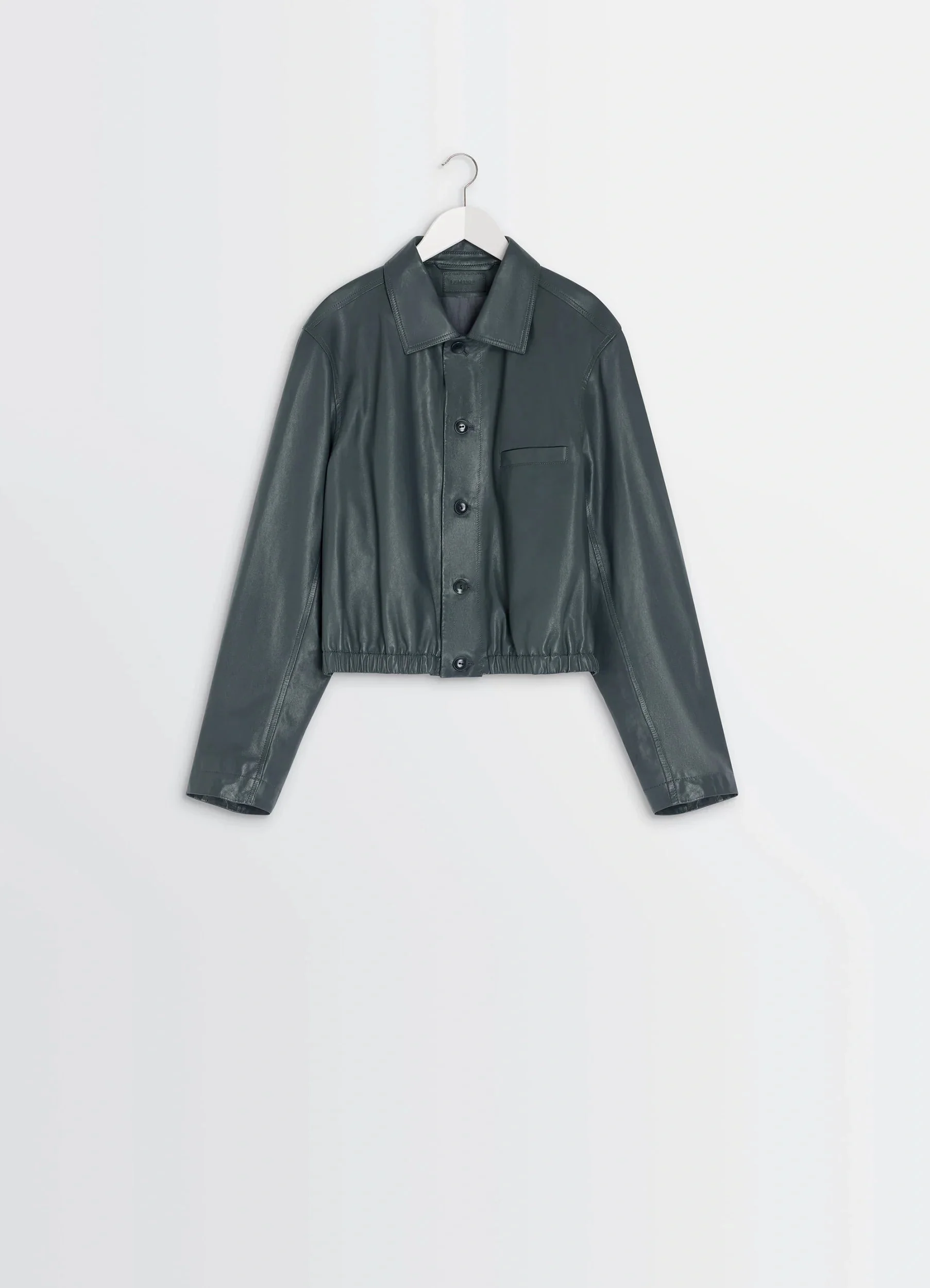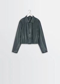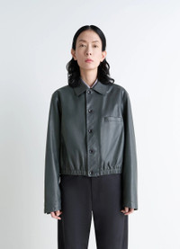 This cropped leather jacket completes Lemaire's feminine wardrobe. It is made from soft cow leather, a lightweight material with a paper-like appearance and natural shine. The model is 177 cm tall and is wearing a size 36 (S). This cropped leather jacket completes Lemaire's feminine wardrobe. It is made from soft cow leather, a lightweight material with a paper-like appearance and natural shine. The model is 177 cm tall and is wearing a size 36 (S). DETAILS Soft leather blouson Straight cut, cinched at the waist .Fully lined model Shirt collar Button closure Long sleeves Straight buttoned cuffs Welted chest pocket Elasticated waistband Inside patch pocket Made in Turkey Style : OW1158 LL0146 Soft leather blouson Straight cut, cinched at the waist .Fully lined model Shirt collar Button closure Long sleeves Straight buttoned cuffs Welted chest pocket Elasticated waistband Inside patch pocket Made in Turkey Style : OW1158 LL0146 CARE Main Material: 100% Cow Leather Main Lining: 51% Cotton 49% Viscose Second Lining: 100% Cotton Do not wash Do not bleach Do not tumble dry Do not iron Professional leather clean only Main Material: 100% Cow Leather Main Lining: 51% Cotton 49% Viscose Second Lining: 100% Cotton Do not wash Do not bleach Do not tumble dry Do not iron Professional leather clean only