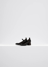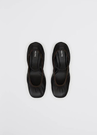 This Square Ballerina is a new addition to LEMAIRE’s line of ballet-inspired shoes. Crafted from smooth Nappa leather with a soft texture, these shoes feature a round toe and a 55mm heel. They are adorned with a tonal braided strap across the upper foot and lined with tonal lambskin Nappa leather for a smooth feel. A leather tab at the back will help you put them on. DETAILS - Soft Nappa cow leather - Lambskin Nappa leather lining - Tonal elastic strap - Stacked 55mm / 2,15in heel Made in Portugal Style: FO0153 LL0115 FABRICS & CARE - Main Fabric: 100% Cow - Main Lining: 100% Lamb. If exposed to water or high humidity, dry your shoes well with an absorbent cloth and let them air dry before storing them. Smooth leather: Use a soft cloth and apply a measured amount of uncolour milk or cream. Suede leather: Brush lightly with a sponge or special suede cloth.