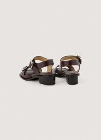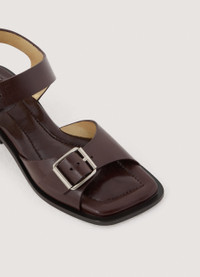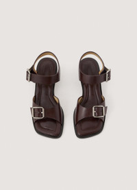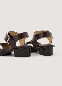 These heeled sandals are made of vegetable tanned cow leather with a compact grain and a smooth finish. Composed of a toestrap and an ankle strap with metal buckles, they feature a rounded square toe, a square heel and wadded insoles for added comfort. DETAILS Raw painted edges Ankle and toe straps with metal buckles Square stacked leather heel 3.5 cm heel Made in Portugal Style : FO0030 LL196 This model is 172 cm and is wearing a size 39 (FR) FABRICS & CARE Main Material: 100% Cowhide Leather Main Lining: 100% Calf Leather If exposed to water or high humidity, dry your shoes well with an absorbent cloth and let them air dry before storing them. Care: Smooth leather: Use a soft cloth and apply a measured amount of uncolour milk or cream. Suede leather: Brush lightly with a sponge or special suede cloth.