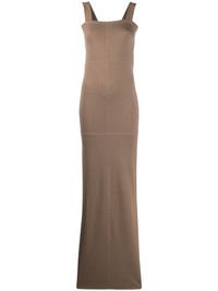 square neck maxi dress Tobacco brown square neck maxi dress from LEMAIRE featuring shoulder straps, a square neck, a slim fit and a long length. Imported Composition Viscose 78%, Polyamide 18%, Spandex/Elastane 4% SIZE & FIT Model measurements Height 5 ft 10 in(1.78 m) Bust/Chest 34.25 in(87 cm) Hips 35.03 in(89 cm) Waist 26.37 in(67 cm) FittingInformation This piece fits true to size. We recommend you get your regular size Cut for a close fit Made with a mid-weight stretch fabric