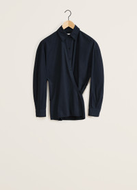 This shirt is part of the iconic Twisted family and a staple of LEMAIRE’s wardrobe. It is made of a light cotton that has been garment-dyed, softening its hand. Its details include a straight collar and an asymmetric button placket that closes over the hip, wrapping around the waist. DETAILS - Relaxed fit - Straight collar - Corozo buttons - Adjustable angled cuffs - Knotted inner tie Made in Romania Style: SH1032 LF445 FABRICS & CARE Main Material: 100% Cotton Soft wash 30° Do not bleach Do not tumble dry Cool ironing Soft dry clean