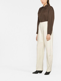 straight-leg cotton-blend trousers Lemaire emphasises the enduring nature of these straight-leg trousers through their timeless tonal design and sweeping straightforward silhouette. Imported Composition Outer: Cotton 45%, Viscose 33%, Virgin Wool 22% Lining: Cotton 100% SIZE & FIT Model measurements Height 5 ft 10 in(1.77 m) Bust/Chest 32.28 in(82 cm) Hips 34.64 in(88 cm) Waist 24.4 in(62 cm) Washing instructions Dry Clean Only