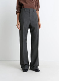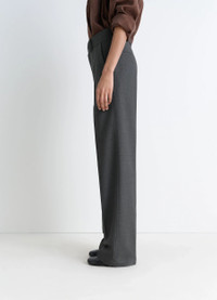 These tailored pants are in the spirit of traditional tailoring. They are made from a wool-blend suit fabric. With their characteristic twill weave, they are both dense and supple. The model is 177 cm and is wearing a size 36 (S). DETAILS Straight-leg tailored pants in wool-blend twill .Straight cut Belt loops at the waistband Closure with hook, button, and hidden zipper Italian side pockets Distinct front and black pleats Welted back pockets Made in Romania Style : PA1255 LF1048 CARE Main Material: 55% Polyester 45% Wool Main Lining: 100% Cotton Do not wash Do not bleach Do not tumble dry Cool ironing Soft dry clean