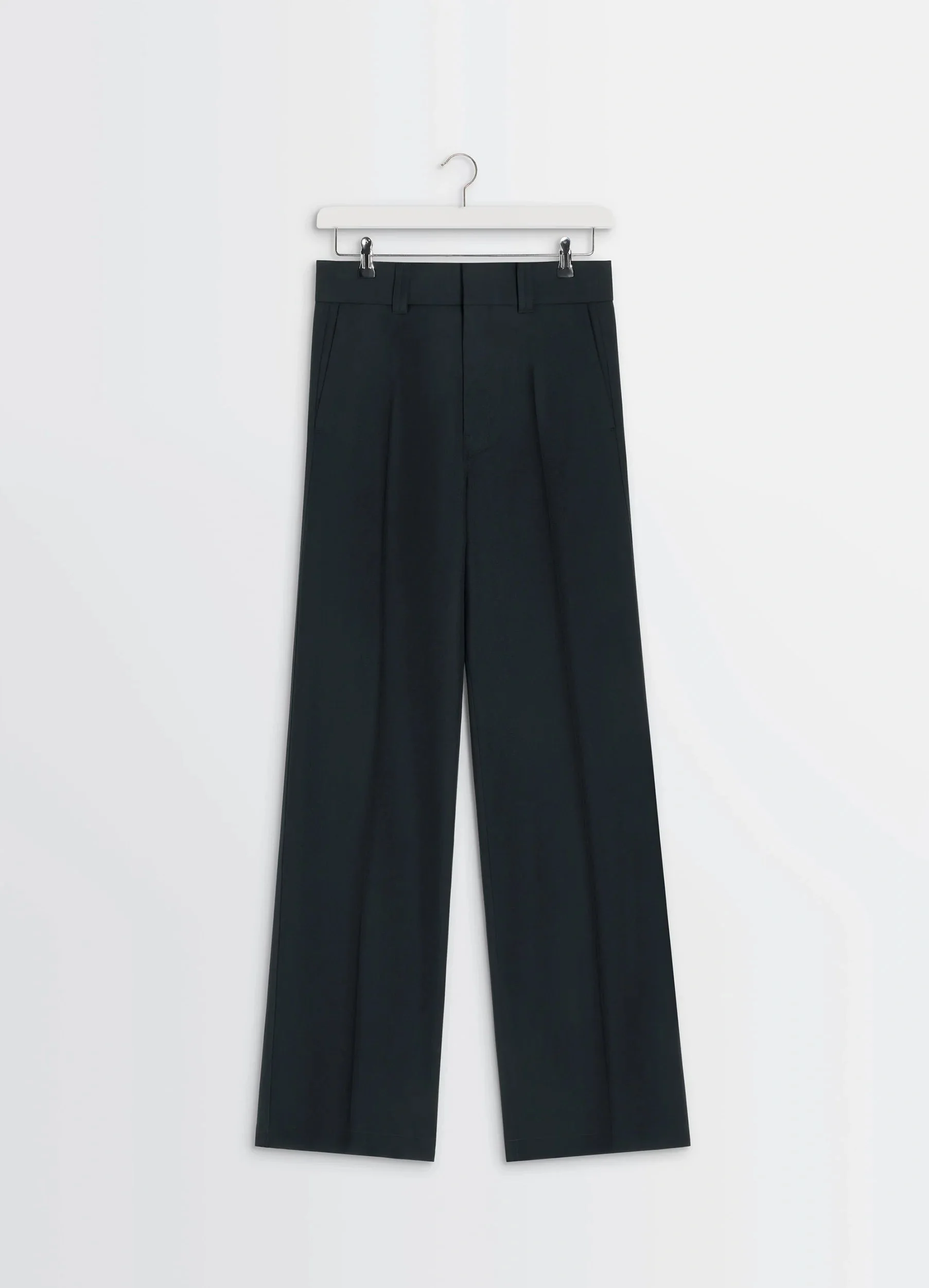 These tailored pants are in the spirit of traditional tailoring. They are made from a wool-blend suit fabric. With their characteristic twill weave, they are both dense and supple. The model is 177 cm and is wearing a size 36 (S). DETAILS Straight-leg tailored pants in wool-blend twill .Straight cut Belt loops at the waistband Closure with hook, button, and hidden zipper Italian side pockets Distinct front and black pleats Welted back pockets Made in Romania Style : PA1255 LF1048 CARE Main Material: 55% Polyester 45% Wool Main Lining: 100% Cotton Do not wash Do not bleach Do not tumble dry Cool ironing Soft dry clean