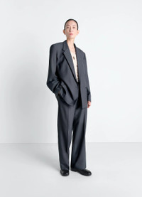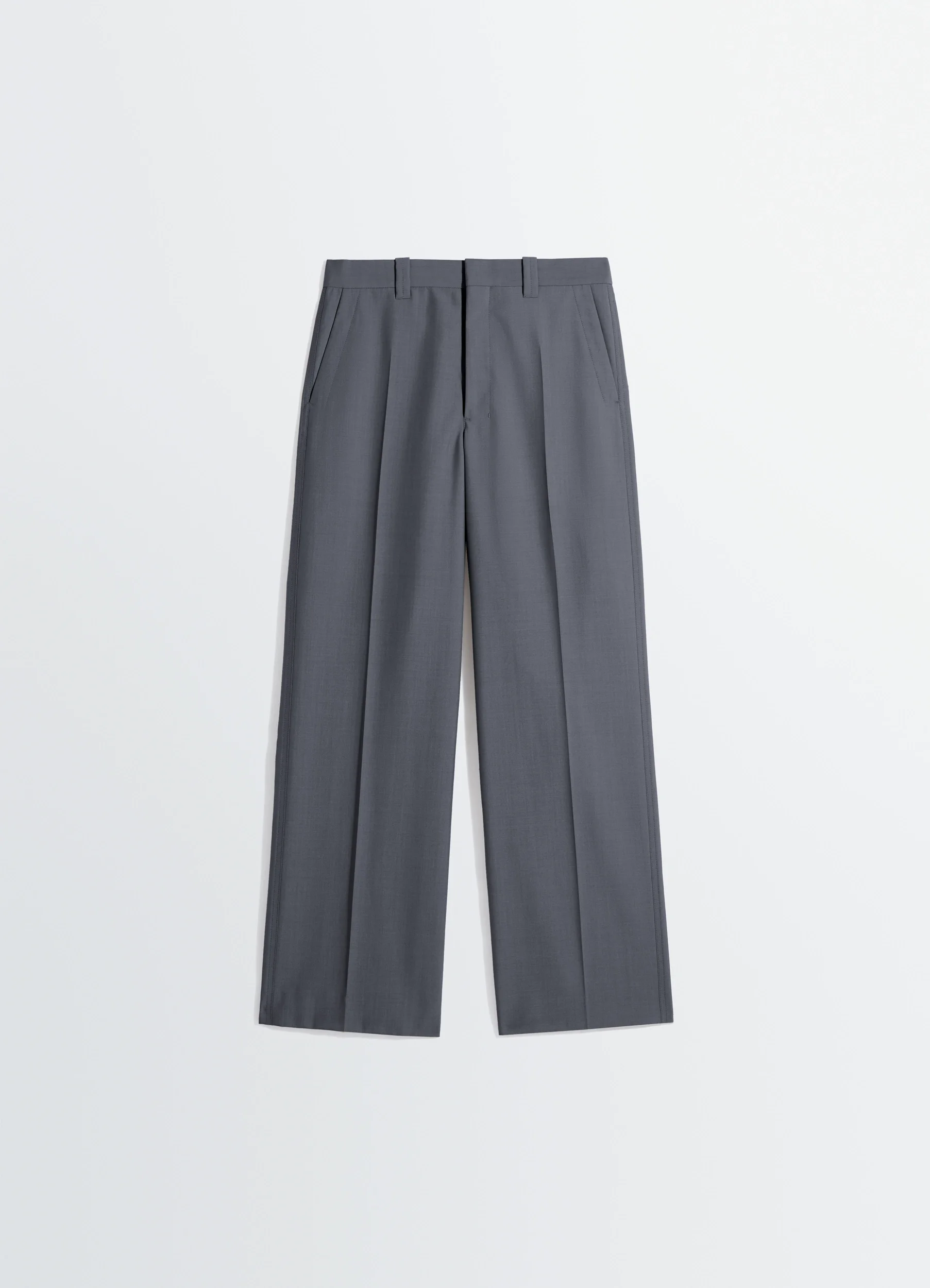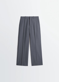 These trousers follow traditional tailoring codes. They are crafted from blended tropical-wool suiting that is both dense and supple. The model is 177 cm tall and wears a size 36 (S). These trousers follow traditional tailoring codes. They are crafted from blended tropical-wool suiting that is both dense and supple. The model is 177 cm tall and wears a size 36 (S). DETAILS Tailored straight trousers in tropical wool blend Waistband with belt loops Hook, button, and zip fastening Side slant pockets Front and back pleats Back welt pockets Made in Romania Style: PA1268 LF414 Tailored straight trousers in tropical wool blend Waistband with belt loops Hook, button, and zip fastening Side slant pockets Front and back pleats Back welt pockets Made in Romania Style: PA1268 LF414 CARE Main fabric: 55% polyester, 45% wool Main lining: 100% cotton Do not wash Do not bleach Do not tumble dry Cool ironing Soft dry clean Main fabric: 55% polyester, 45% wool Main lining: 100% cotton Do not wash Do not bleach Do not tumble dry Cool ironing Soft dry clean