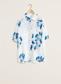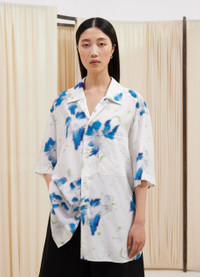 This unisex shirt is a new addition to LEMAIRE’s wardrobe. It is made in silky viscose with a vibrant pattern of blurry flowers set in motion by the body. The Summer Shirt features a workwear collar and a single patch pocket on the chest. Short sleeves and side slits allow great freedom of movement. In the back, an overlapping construction provides ventilation. DETAILS Unisex - Short sleeves - A single patch pocket on the chest - Loose fit - Col workwear - Mother-of-pearl buttons - Ventilated open back - Side slits Made in Hungary Style: SH1101 LF1271 FABRICS & CARE Main Material: 100% Viscose Soft wash 30° Do not bleach Do not tumble dry Cool ironing Do not dry clean Dry flat