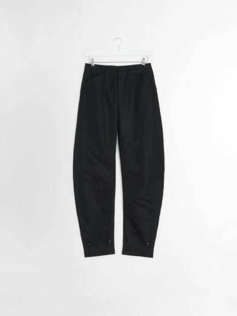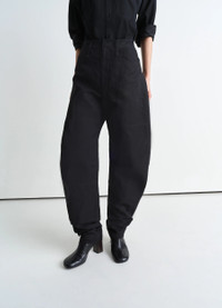These Tapered Pants are crafted in cotton linen gabardine, a light and fluid fabric with a soft hand, perfect for the mid-season. They feature our signature curved leg with a more tapered silhouette, offering a feminine take on LEMAIRE'S twisted style. The narrower ankle and fitted waist enhance the shape, while diagonal front pockets, back pockets and tonal stitchings add utilitarian charm. Belt loops and adjustable buttons at the ankle allow for versatile styling, cinching the leg for a customized fit. DETAILS - Straight fit - Curved leg - Diagonal front pockets - Welt back pockets - Stitching details Made in Romania Style: PA1184 LF1350 The Model is 176cm / 5' 9½'' ft and is wearing a size 36 (S). FABRICS & CARE Main Fabric: 60% Cotton, 40% Linen Main Lining: 51% Cotton, 49% Viscose Second Lining: 100% Cotton Hand wash Do not bleach Do not tumble dry Cool ironing Soft dry clean