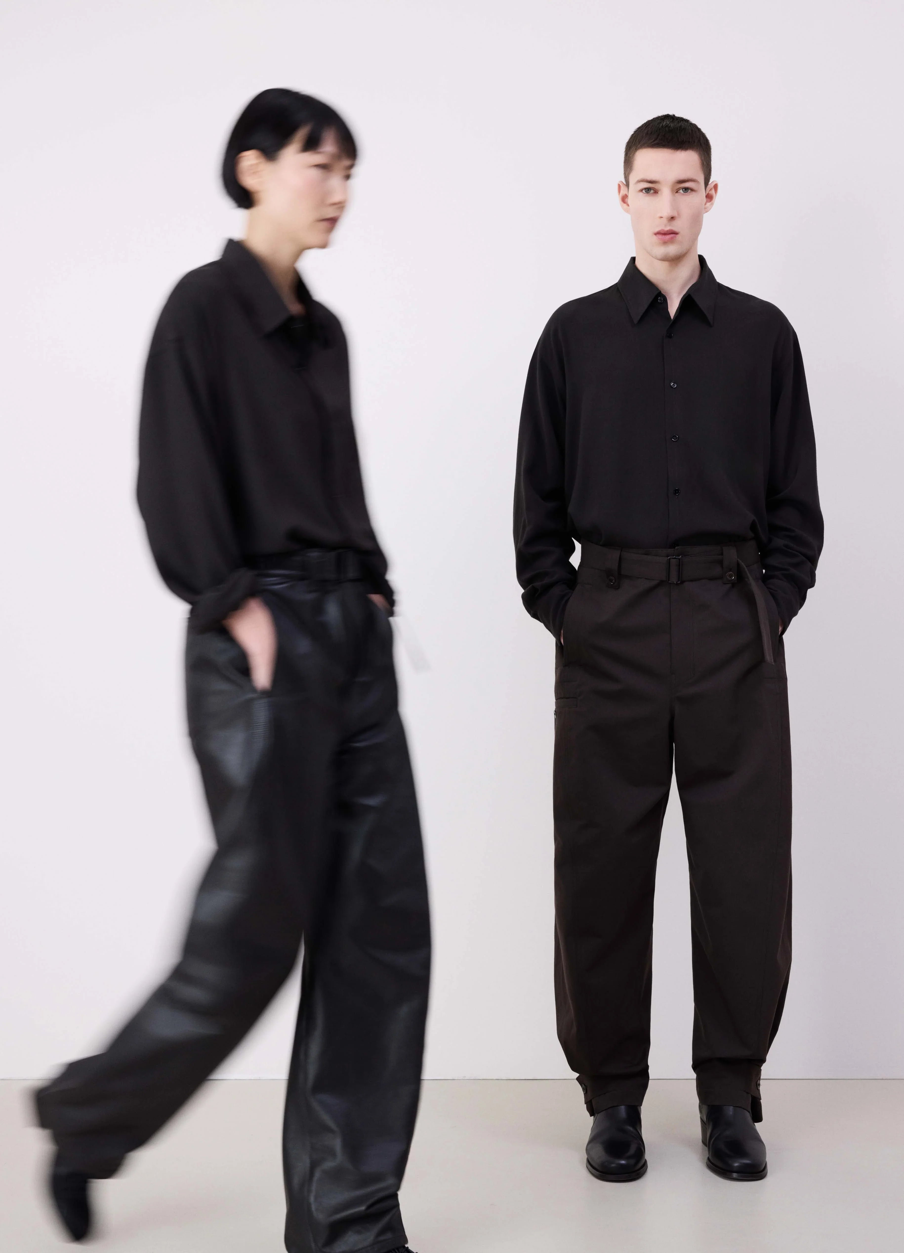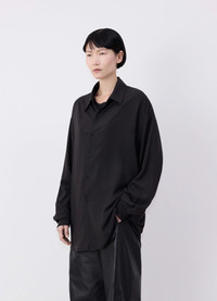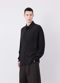 A staple of LEMAIRE's wardrobe, this loose-fit, unisex shirt is crafted in light viscose wool, a very soft blend which also brings fluidity and lightness to the garment. It features a wide single patch pocket on the front and a smaller-inner pocket peeking out. This drapey style has ample sleeves which button at the cuffs via a topstitched placket, a signature LEMAIRE detail also present alongside the front fastening system. DETAILS - Loose fit - Double patch pocket - Mother-of-pearl buttons - Button placket Made in Tunisia Style: SH1116 LF1286 FABRICS & CARE Main Fabric: 85% Viscose / 15% Virgin Wool Do not wash Do not bleach Do not tumble dry Cool ironing Soft dry clean
