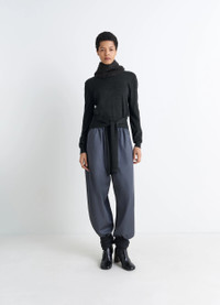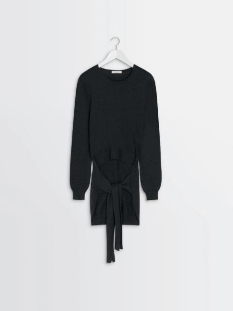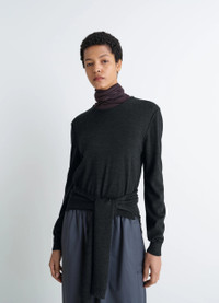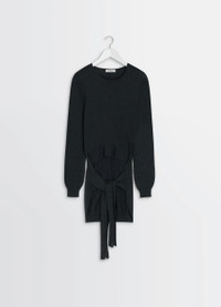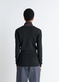 This trompe-l'œil jumper is part of an evolving, modular wardrobe that reflects Lemaire's love for movement. Featuring sweater-style tie-around panels at the back, it is knitted in a blended merino wool that is both dry and soft. The model is 177 cm and is wearing a size 36 (S). This trompe-l'œil jumper is part of an evolving, modular wardrobe that reflects Lemaire's love for movement. Featuring sweater-style tie-around panels at the back, it is knitted in a blended merino wool that is both dry and soft. The model is 177 cm and is wearing a size 36 (S). DETAILS Trompe l’œil crewneck jumper in merino wool blend Trompe-l’oeil asymmetrical straight cut Crewneck Visible shoulder and armhole seams Long sleeves Trompe-l’oeil sweater-style back panels Rib-knit trim Made in Portugal Style : TO1434 LK1045 Trompe l’œil crewneck jumper in merino wool blend Trompe-l’oeil asymmetrical straight cut Crewneck Visible shoulder and armhole seams Long sleeves Trompe-l’oeil sweater-style back panels Rib-knit trim Made in Portugal Style : TO1434 LK1045 CARE Main Material: 50% Acrylic 50% Wool Hand wash Do not bleach Do not tumble dry Cool ironing Soft dry clean Dry flat Main Material: 50% Acrylic 50% Wool Hand wash Do not bleach Do not tumble dry Cool ironing Soft dry clean Dry flat