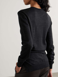 At first glance, LEMAIRE's sweater looks like a cardigan, but that's all in the 'Trompe L’oeil' effect it's named after. It's knitted from wool-blend for a loose fit that sits lower at the back and is detailed with a tie at the waist. Wear yours with relaxed tailoring. Size & Fit - Fits true to size, take your normal size - Designed for a relaxed fit, use the tie belt to cinch in at the waist - Mid-weight knit - Model is 175cm/ 5'9" and is wearing a size Small Model measurements: - Bust: 81cm/ 32" - Waist: 64cm/ 25" - Hip: 89cm/ 35" Details & Care - Gray wool-blend - Slips on - 50% wool, 50% acrylic - Hand wash or dry clean