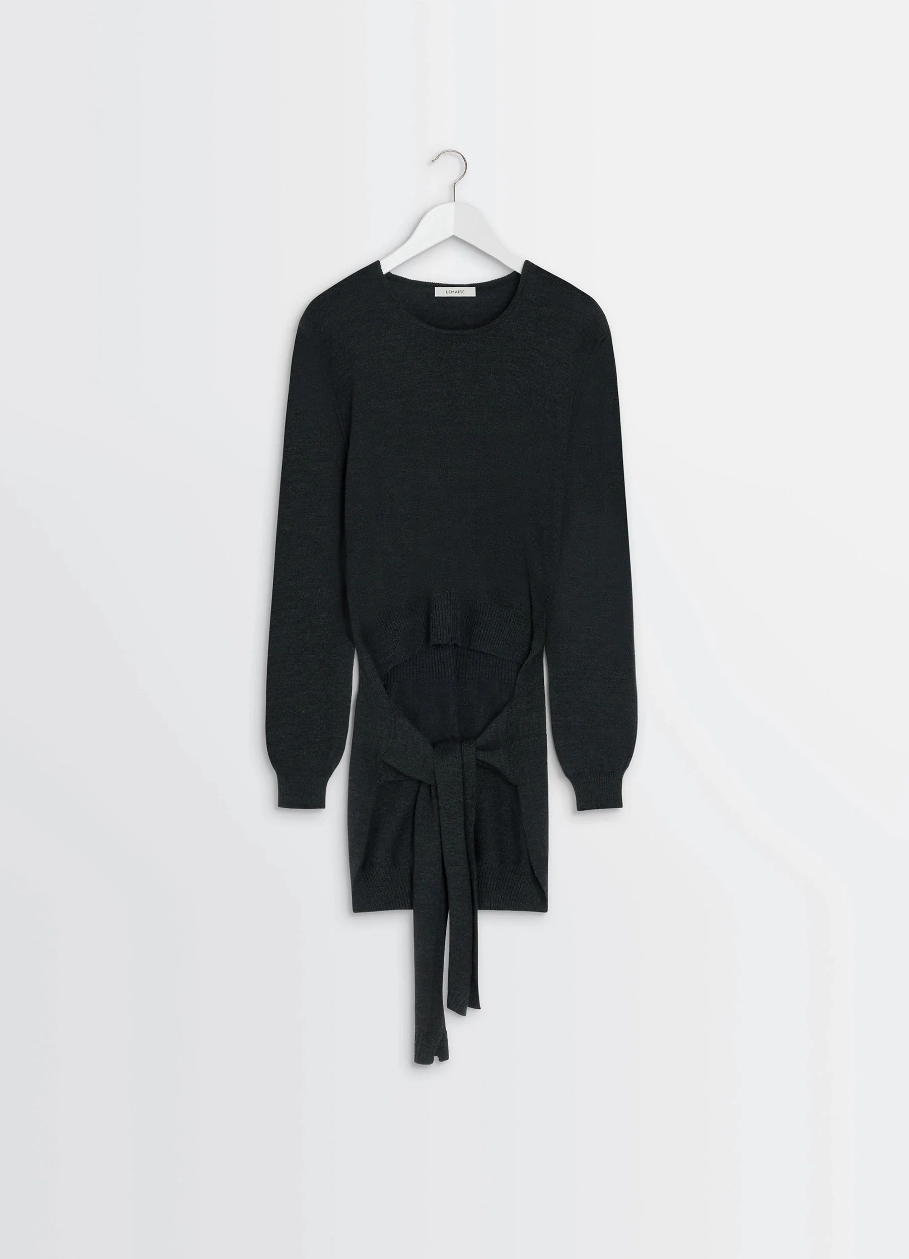 This trompe-l'œil jumper is part of an evolving, modular wardrobe that reflects Lemaire's love for movement. Featuring sweater-style tie-around panels at the back, it is knitted in a blended merino wool that is both dry and soft. The model is 177 cm and is wearing a size 36 (S). This trompe-l'œil jumper is part of an evolving, modular wardrobe that reflects Lemaire's love for movement. Featuring sweater-style tie-around panels at the back, it is knitted in a blended merino wool that is both dry and soft. The model is 177 cm and is wearing a size 36 (S). DETAILS Trompe l’œil crewneck jumper in merino wool blend Trompe-l’oeil asymmetrical straight cut Crewneck Visible shoulder and armhole seams Long sleeves Trompe-l’oeil sweater-style back panels Rib-knit trim Made in Portugal Style : TO1434 LK1045 Trompe l’œil crewneck jumper in merino wool blend Trompe-l’oeil asymmetrical straight cut Crewneck Visible shoulder and armhole seams Long sleeves Trompe-l’oeil sweater-style back panels Rib-knit trim Made in Portugal Style : TO1434 LK1045 CARE Main Material: 50% Acrylic 50% Wool Hand wash Do not bleach Do not tumble dry Cool ironing Soft dry clean Dry flat Main Material: 50% Acrylic 50% Wool Hand wash Do not bleach Do not tumble dry Cool ironing Soft dry clean Dry flat