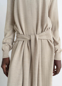 This trompe-l'œil dress is part of an evolving, modular wardrobe that reflects Lemaire's love for movement. Featuring sweater-style tie-around panels at the back, it is knitted in a blended merino wool that is both dry and soft. The model is 177 cm and is wearing a size 36 (S). DETAILS Trompe l’œil dress in merino wool blend >Stand-up collar Visible shoulder and armhole seams Long sleeves Trompe-l’oeil sweater-style back panels Side slits Rib-knit trim Made in Portugal Style : DR1082 LK087 CARE Main Material: 50% Acrylic 50% Wool