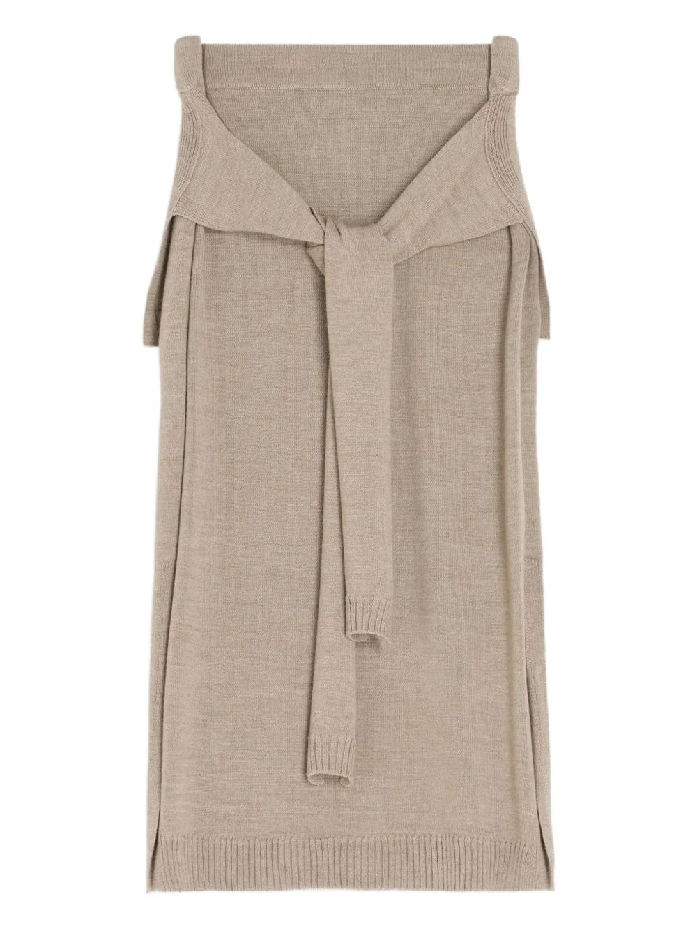 trompe l'oeil midi knitted skirt Highlights - Light taupe - Ribbed waistband - Trompe-l'œil detail - Side slits Imported Composition Fabric 100% Washing instructions Read Manufacturer Guidelines
