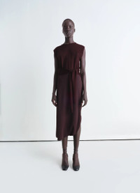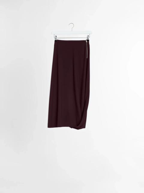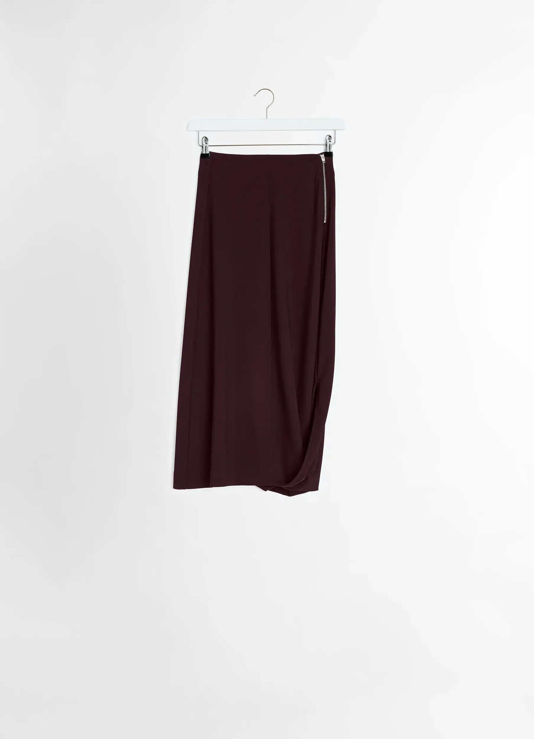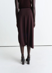 This long skirt is crafted from a blend of viscose and silk with a soft hand, that contours the body for a close yet comfortable fit. The Twisted Hem Skirt is fitted on the hips and straight at the bottom where the shape twists elegantly. The standout detail lies on the bottom half, where a slit opens up into a cut-out, creating a unique way of slipping into the skirt. The design is completed with cotton binding details at the waistband and an invisible zip on the side seam adding a refined touch to its minimalist elegance. DETAILS - Fitted shape - Midi length - Slit detail at the calves - Zip fly at the seam - Cotton lined waistband Made in Portugal Style: SK1047 LJ1034 FABRICS & CARE Main Fabric: 80% Viscose, 16% Silk, 4% Elastane Main Lining: 100% Cotton Soft wash 30° Do not bleach Do not tumble dry Cool ironing Do not dry clean Dry flat