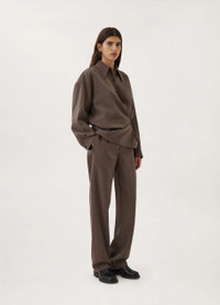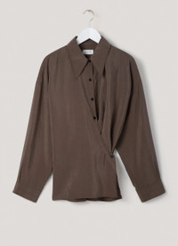 This shirt is a classic of the Lemaire wardrobe. It is made of a heavy poplin for a warmer wear, with a smooth surface woven from organic cotton yarn. Its details include a loose pointed collar and an asymmetric button placket that closes over the hip, wrapping around the waist. DETAILS Mother-of-pearl buttons Adjustable angled cuffs Knotted inner tie Relaxed fit Made in Romania Style : SH254 LF839 This model is 178 cm and is wearing a size 36 (FR) FABRICS & CARE Cotton poplin woven in Italy 100% cotton We recommend you a 30° soft wash cleaning and cool ironing to preserve the quality of this garment.