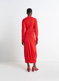 Inspired by Lemaire's taste for the link between comfort and elegance, this V-neck dress in viscose crepe jersey features draped elements, completing the house's feminine wardrobe. The model is 177 cm tall and is wearing a size 36 (S). DETAILS V-neck dress in viscose crepe jersey Fitted cut Midi-length Draped V-neck panel Long sleeves Drape-style waist panel with pocket Made in Portugal Style : DR1127 LJ1040 CARE Main Material: 100% Viscose Do not wash Do not bleach Do not tumble dry Cool ironing Soft dry clean Dry flat