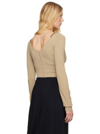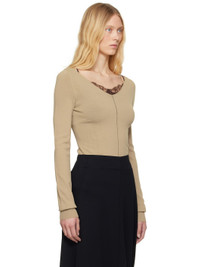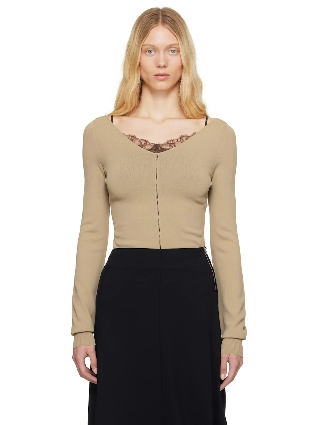 Knit viscose-blend top. · V-neck · Laddering at front and back · Curved hem · Rib-knit cuffs Supplier color: Mastic 75% viscose, 25% polyamide. Made in Italy 251646F107002