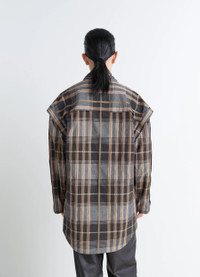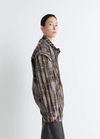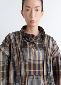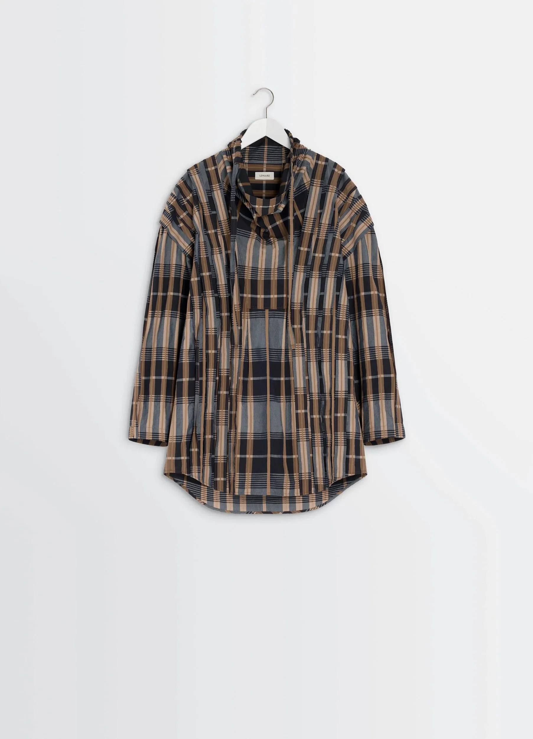 This long vareuse reflects Lemaire's attraction for workwear and archetypal pieces. Here, this emblematic piece is reinterpreted in satin-finish cotton and plays with a multitude of topstitched stripes, creating a new check pattern with a relief effect. The model is 177 cm and is wearing a size 36 (S). This long vareuse reflects Lemaire's attraction for workwear and archetypal pieces. Here, this emblematic piece is reinterpreted in satin-finish cotton and plays with a multitude of topstitched stripes, creating a new check pattern with a relief effect. The model is 177 cm and is wearing a size 36 (S). DETAILS Cotton satin check vareuse top Applied and topstitched stripes at the front and sleeves Oversized cut High neck with drawcord Shoulder pleats Long sleeves Round hem Made in Portugal Style : TO1458 LF1508 Cotton satin check vareuse top Applied and topstitched stripes at the front and sleeves Oversized cut High neck with drawcord Shoulder pleats Long sleeves Round hem Made in Portugal Style : TO1458 LF1508 CARE Main Material: 100% Cotton Second Material: 100% Cotton Do not wash Do not bleach Do not tumble dry Cool ironing Soft dry clean Main Material: 100% Cotton Second Material: 100% Cotton Do not wash Do not bleach Do not tumble dry Cool ironing Soft dry clean