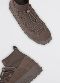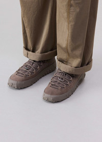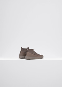 The Vibram Sneaker marks LEMAIRE’s first foray into the technical sneaker. They are made in collaboration with Vibram, known for their savoir-faire in terms of rubber soles. This style is made in smooth leather and incorporates a knitted sock and a closing cord with a rubber cord stopper. This comfortable and elegant style sits on a Wrap On sole, a specific innovation which guarantees both waterproofing, excellent grip and durability. DETAILS - Smooth leather - Knitted socks - Round lace with rubber cord stopper - Technical Vibram sole Made in Portugal Style: FO0129 LL0116 FABRICS & CARE Main Fabric: 100% Cow Second Fabric: 90% Polyamide/Nylon / 10% Elasthanne Main Lining: 100% Cow If exposed to water or high humidity, dry your shoes well with an absorbent cloth and let them air dry before storing them. Smooth leather: Use a soft cloth and apply a measured amount of uncolour milk or cream. Suede leather: Brush lightly with a sponge or special suede cloth.