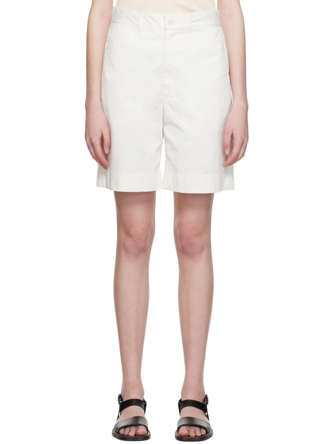 Cotton drill shorts. · Belt loops · Three-pocket styling · Zip-fly Supplier color: Chalk 100% cotton. Made in Bulgaria 231646F088006