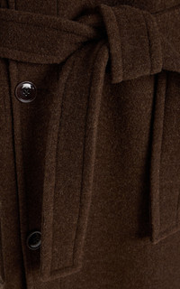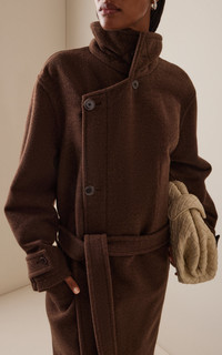 Helmed by Christophe Lemaire and Sarah-Linh Tran, the Lemaire brand creates a modular wardrobe through timeless Parisian design — pieces are meant to be paired effortlessly across seasons and collections. Leather goods and accessories are made by local artisans with novel approaches to age-old techniques. PRODUCT DETAILS - Fall '25 - Tie fastening - Composition: 100% wool; Lining: 100% cotton - Designer color: Dark Squirrel - Dry clean - Imported SIZE & FIT - Our model is wearing a size Small - Model is 5'10" with a 30" bust, 24" waist, and 34" hip
