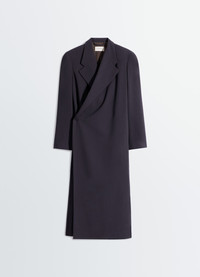 Crafted from fine wool canvas with a perfect drape, the enveloping wool crepe coat features a draped effect and side closure. Its elongated silhouette has structured shoulders. The model is 177 cm tall and wears a size 36 (S). Crafted from fine wool canvas with a perfect drape, the enveloping wool crepe coat features a draped effect and side closure. Its elongated silhouette has structured shoulders. The model is 177 cm tall and wears a size 36 (S). DETAILS Wrap coat in wool crepe Regular fit Fully lined Notched collar Shoulder pads and long sleeves Single side button closure Side vents Made in Italy Style: CO1150 LF1537 Wrap coat in wool crepe Regular fit Fully lined Notched collar Shoulder pads and long sleeves Single side button closure Side vents Made in Italy Style: CO1150 LF1537 CARE Main fabric: 100% wool Second fabric: 100% cotton Main lining: 51% cotton, 49% viscose Do not wash Do not bleach Do not tumble dry Cool ironing Soft dry clean Main fabric: 100% wool Second fabric: 100% cotton Main lining: 51% cotton, 49% viscose Do not wash Do not bleach Do not tumble dry Cool ironing Soft dry clean