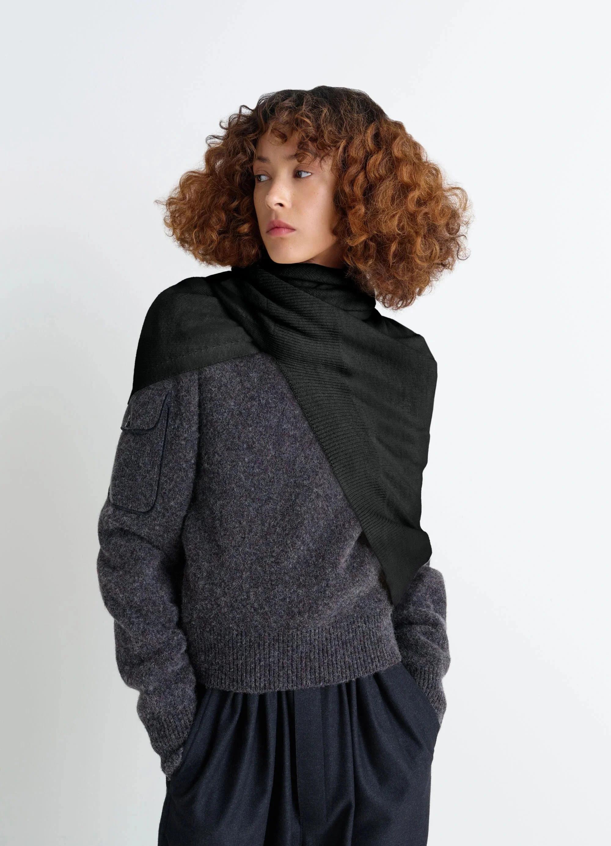 This wrap scarf is part of an evolving, modular wardrobe reflecting Lemaire's love of layering. It's made from a wool-alpaca blend, a knit that is soft and warm to the touch. DETAILS Wrap scarf in wool and alpaca blend Long model with panel to drape Rib-knit trim Made in Portugal Style : AC1228 LK1028 FABRICS & CARE Main fabric: 45% acrylic, 40% alpaga, 15% wool