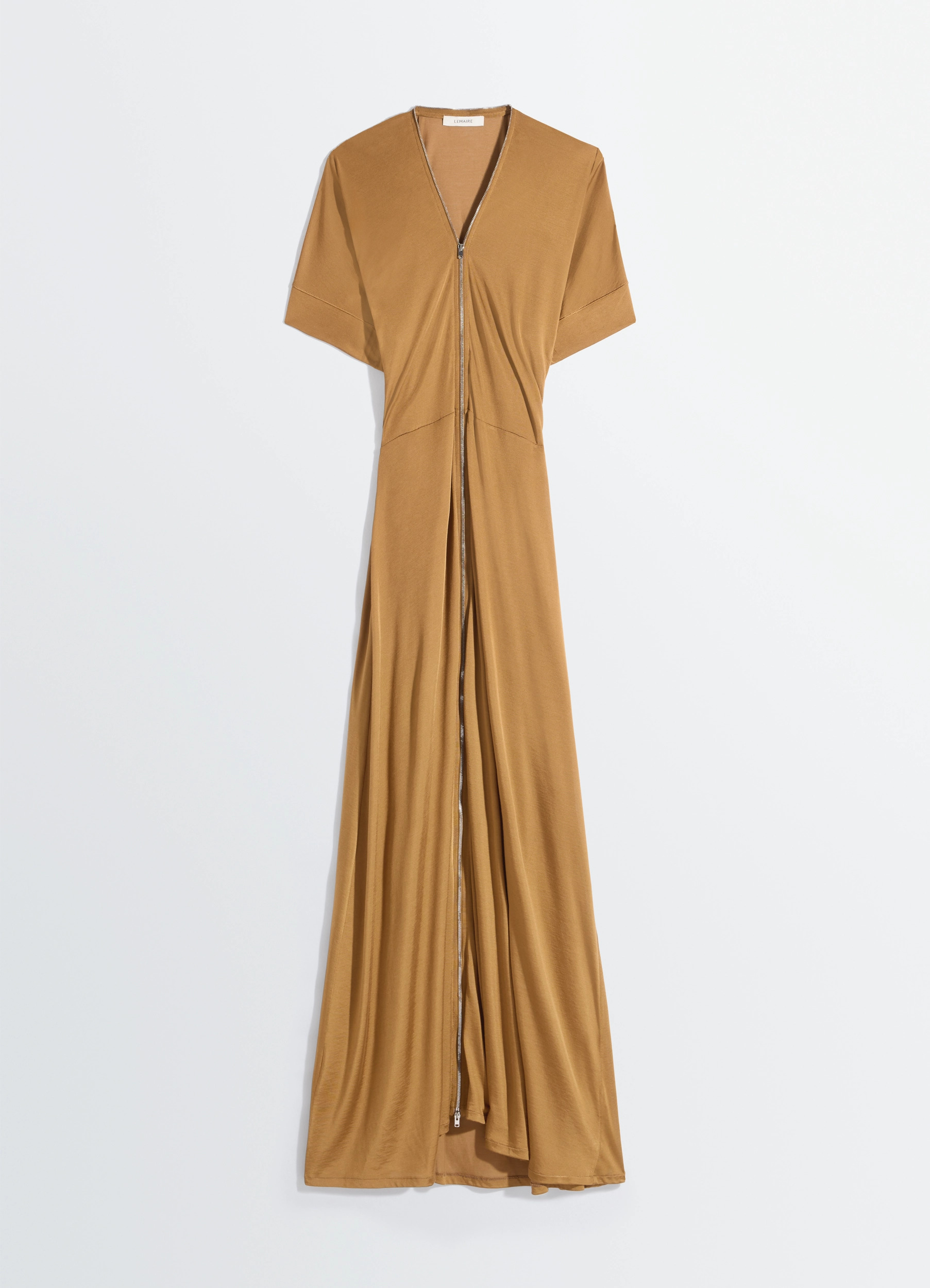 This delicate long dress belongs to an evolving, modular wardrobe that reflects LEMAIRE’s attraction to movement. Featuring a double zipper, it is made from cotton-and-viscose jersey that plays with matte and sheen. The model is 177 cm tall and wears a size 36 (S). This delicate long dress belongs to an evolving, modular wardrobe that reflects LEMAIRE’s attraction to movement. Featuring a double zipper, it is made from cotton-and-viscose jersey that plays with matte and sheen. The model is 177 cm tall and wears a size 36 (S). DETAILS Long zipped dress in viscose-cotton jersey Fitted cut V neckline Short flared sleeves Front double zip fastening Made in Portugal Style: DR1082 LK087 Long zipped dress in viscose-cotton jersey Fitted cut V neckline Short flared sleeves Front double zip fastening Made in Portugal Style: DR1082 LK087 CARE Main fabric: 52% viscose, 48% cotton Main lining: 100% cotton Hand wash Do not bleach Do not tumble dry Cool ironing Do not dry clean Dry flat Wash and iron upside down Main fabric: 52% viscose, 48% cotton Main lining: 100% cotton Hand wash Do not bleach Do not tumble dry Cool ironing Do not dry clean Dry flat Wash and iron upside down