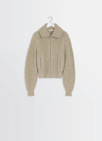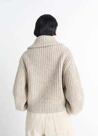 Crafted from a blend of alpaca and yak wool, a densely ribbed knit with a textured look, this zip-up cardigan with stand-up collar is designed as a true outdoor piece. DETAILS Zipped cardigan in alpaca wool and yak Oversized cut Short length Stand-up collar Long sleeves Metal zipper closure Zipped side pockets Rib-knit trim Made in Italy Style : OW1187 LK1029 The model is 177 cm and is wearing a size 36 (S). FABRICS & CARE Main Material: 50% Alpaca 50% Yak