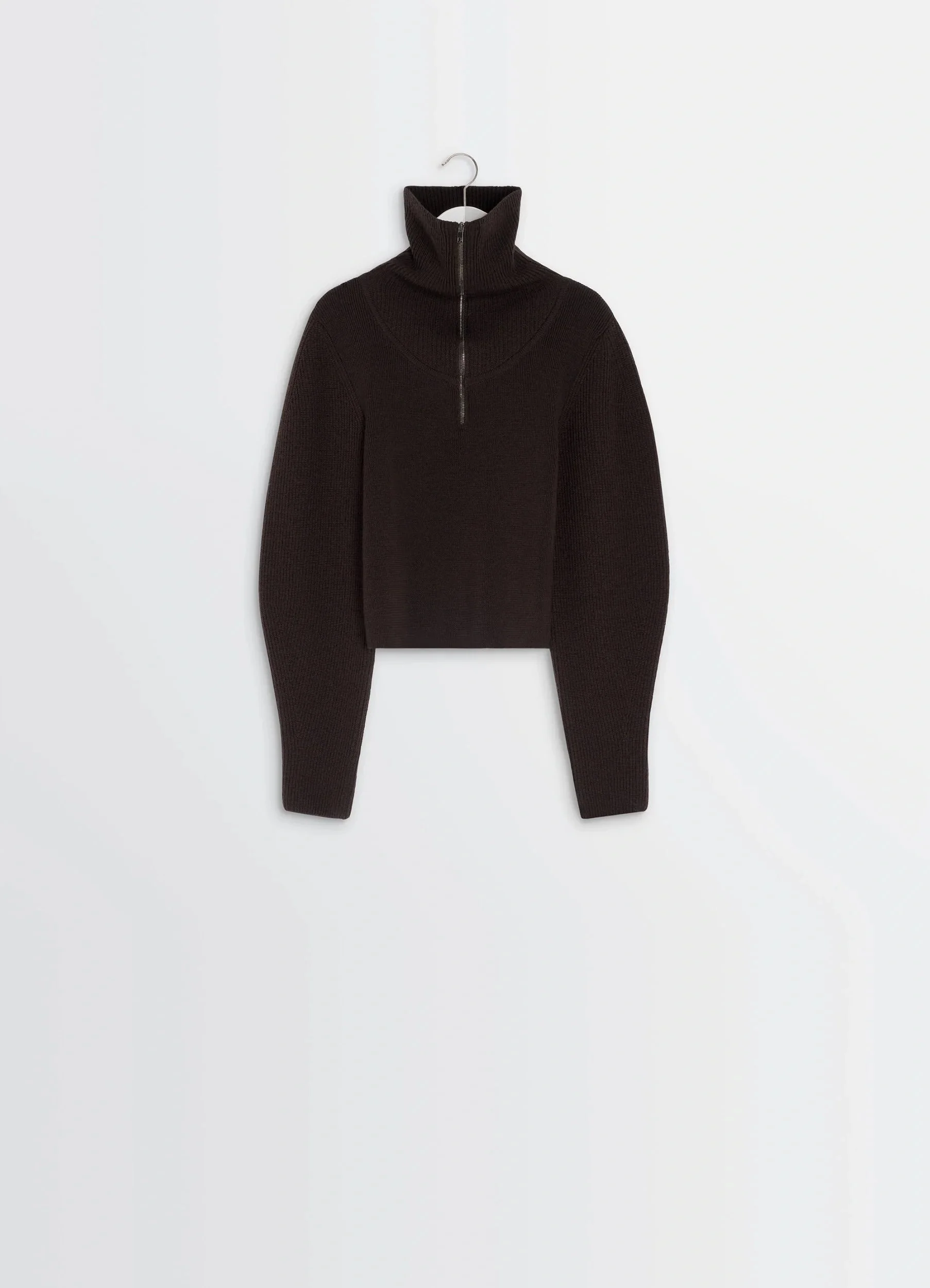 This half-zip sweater is made from combed wool, a durable knit with a soft, warm feel. This piece features different types of knitting between the collar, sleeves and body, giving it relief and texture. DETAILS Zipped worsted wool sweater Straight cut Ribbed knit half zipper collar Ribbed long sleeves Made in Portugal Style : TO1422 LK1043 The model is 177 cm and is wearing a size 36 (S). FABRICS & CARE Main Material: 100% Wool