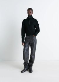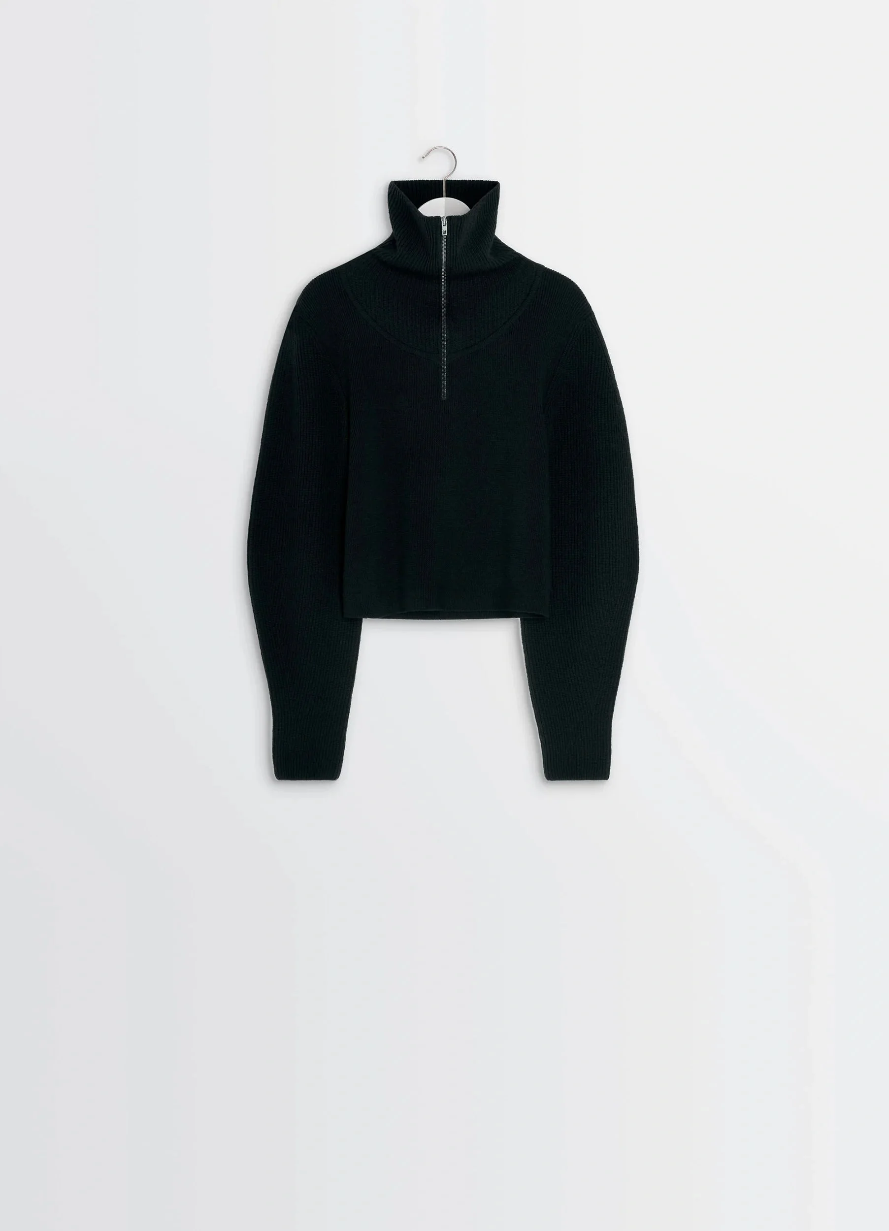 This half-zip sweater is made from combed wool, a durable knit with a soft, warm feel. This piece features different types of knitting between the collar, sleeves and body, giving it relief and texture. DETAILS Zipped worsted wool sweater Straight cut Ribbed knit half zipper collar Ribbed long sleeves Made in Portugal Style : TO1422 LK1043 The model is 177 cm and is wearing a size 36 (S). FABRICS & CARE Main Material: 100% Wool