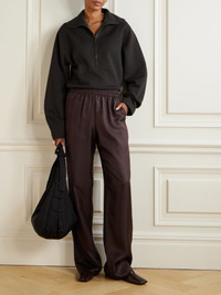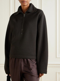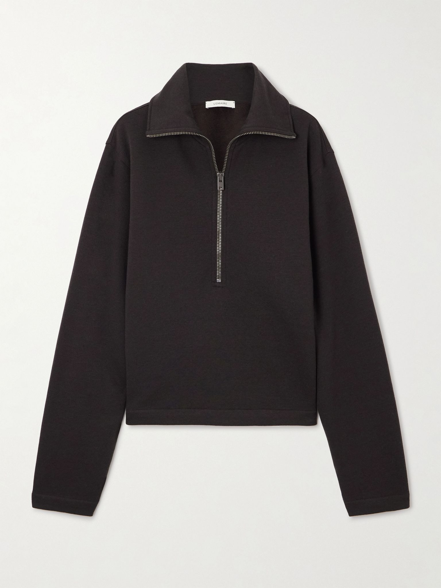 LEMAIRE's collections are done in a soft color palette so that they can be restyled season after season. In a rich dark-brown, this sweater is made from wool and cotton-blend and has a sporty half-zip collar. Wear yours with denim or wide-leg pants. Size & Fit - Intended to be oversized; we recommend sizing down if you prefer a closer fit - Mid-weight knit - Model is 180cm/ 5'11" and is wearing a size Small Model measurements: - Bust: 86cm/ 34" - Waist: 65cm/ 25.5" - Hip: 90cm/ 35.5" Details & Care - Dark-brown wool and cotton-blend - Zip fastening - 65% wool, 35% cotton - Dry clean