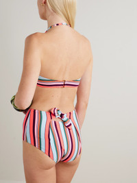 lemlem's bikini is made from quick-drying recycled fabric with plenty of stretch. Patterned with stripes, it's comprised of the brand's 'Ava' bandeau top with detachable straps and the 'Elsi' high-waisted briefs.