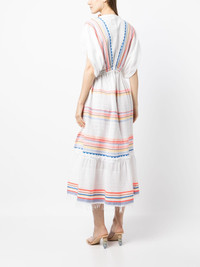 Bekah plunging V-neck dress Highlights - White/multicolour - Cotton blend - Multi-way stripe pattern - Geometric-pattern print - Plunging v-neck - Short sleeves - Fringed edge Made in United States Composition Cotton 95%, Acrylic 5% SIZE & FIT Model measurements Height 5 ft 11 in(1.8 m) Bust/Chest 28.34 in(72 cm) Hips 35.43 in(90 cm) Waist 23.62 in(60 cm) Washing instructions Hand Wash
