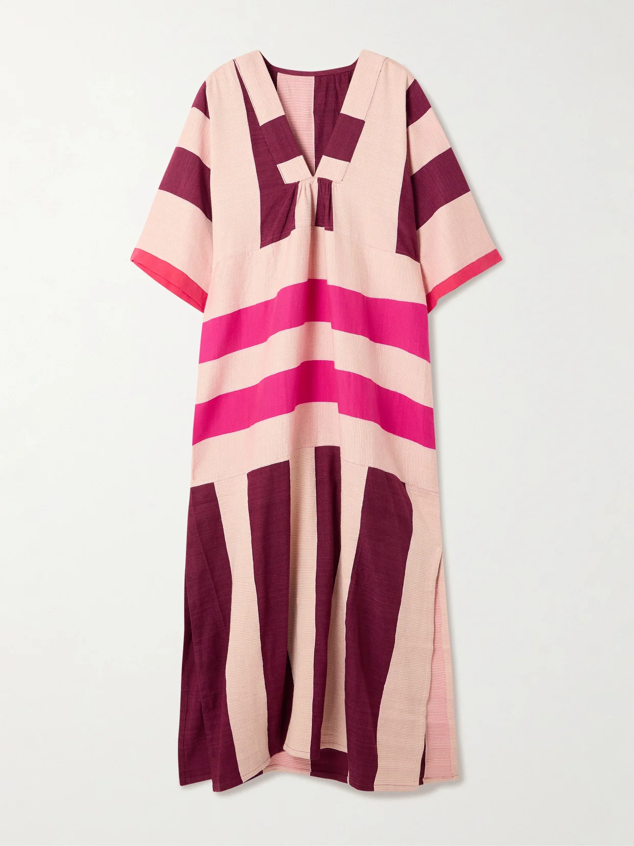 LemLem's 'Edna' maxi dress is patterned with bold color-block stripes - the 'Betami Cherry' palette is inspired by traditional African textiles. Hand-spun and woven by artisans in Ethiopia, it's made from panels of cotton and gathered at the front to cinch the billowy shape. Complement the deep V-neckline with a lariat chain.