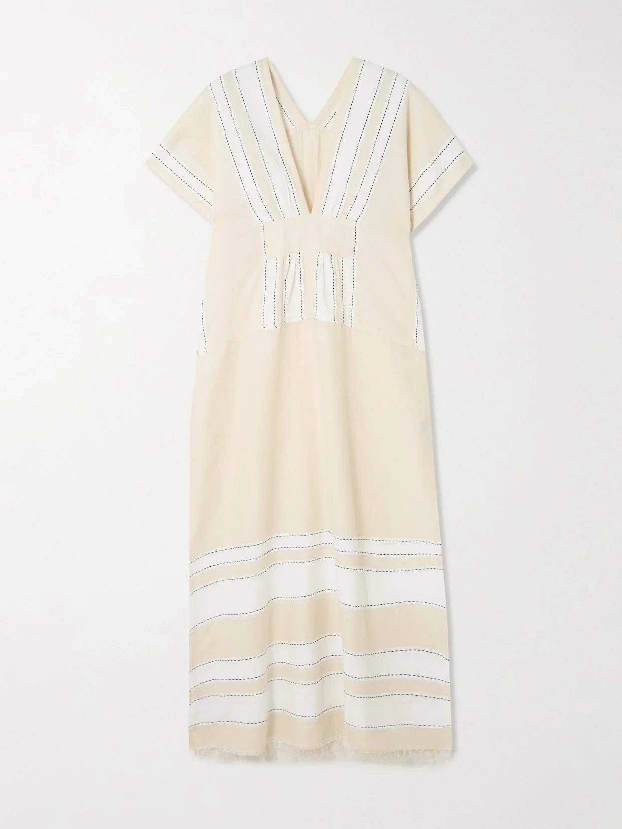 From individually hand-spun yarns to intricate weaving techniques, Lemlem's clothes are designed with thoughtful craftsmanship rooted in traditional Ethiopian artistry. This 'Gasira' maxi dress is made from striped cotton-blend and has a gently nipped-in waist and floaty, split skirt with a frayed hem. Responsible Craftsmanship. This product promotes artisanal skills and a brand that invests in communities and adheres to fair-trade principles. Find out more about our NET SUSTAIN criteria here.