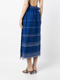 Inku cotton wrap skirt Highlights - Blue/white - Cotton - Wrap design - High-waisted - Tied waist - Fringed edge - Ankle-length Made in United States Composition Cotton 100% SIZE & FIT Model measurements Height 5 ft 11 in(1.8 m) Bust/Chest 28.34 in(72 cm) Hips 35.43 in(90 cm) Waist 23.62 in(60 cm) Washing instructions Hand Wash