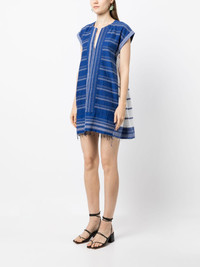 Inku short kaftan dress Highlights - Blue/white - Cotton - Split neck - Short sleeves - Fringed edge Made in United States Composition Cotton 100% SIZE & FIT Model measurements Height 5 ft 11 in(1.8 m) Bust/Chest 28.34 in(72 cm) Hips 35.43 in(90 cm) Waist 23.62 in(60 cm) Washing instructions Hand Wash