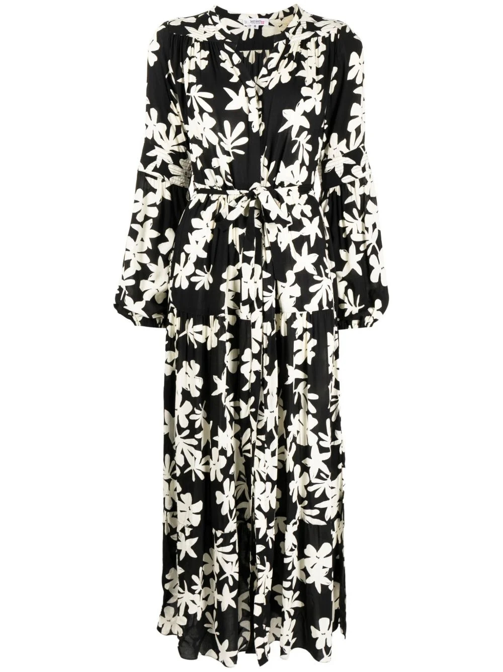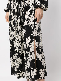 floral-print peasant dress Highlights - Black/white - Floral print - Collarless - Concealed front button fastening - Belted waist - Long puff sleeves - Side slit - Mid-length Imported Composition Viscose 100% SIZE & FIT Model measurements Height 5 ft 11 in(1.8 m) Bust/Chest 28.34 in(72 cm) Hips 35.43 in(90 cm) Waist 23.62 in(60 cm) FittingInformation This piece fits true to size. We recommend you get your regular size Cut for a loose fit. Comes with an adjustable belt for a flexible fit at the waist Made with a lightweight non-stretch fabric Washing instructions Dry Clean Only