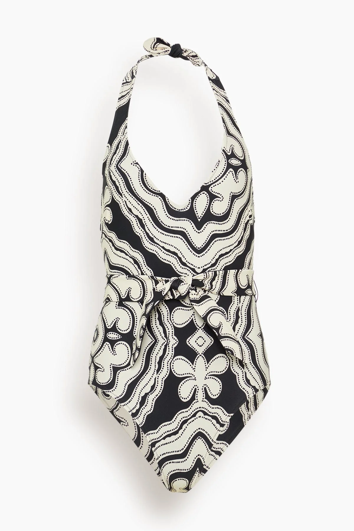 The Lemlem Lidya One Piece will have you ready for a vacation. This one piece swimsuit features a v-neckline with moderate coverage. - One piece swimsuit - V-neckline - Moderate coverage - Adjustable neck tie - Removable belt - Low back - 92% Polyester, 8% Elastane